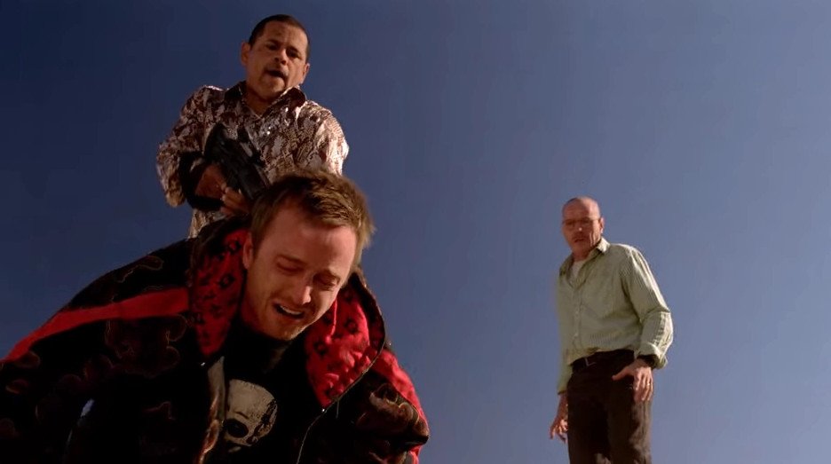 Tuco grabs Jesse with the full intention of killing him before Mr White distracts him enough for Jesse to fight back. Hank then shows up, with Mr White and Jesse hiding, and kills Tuco.